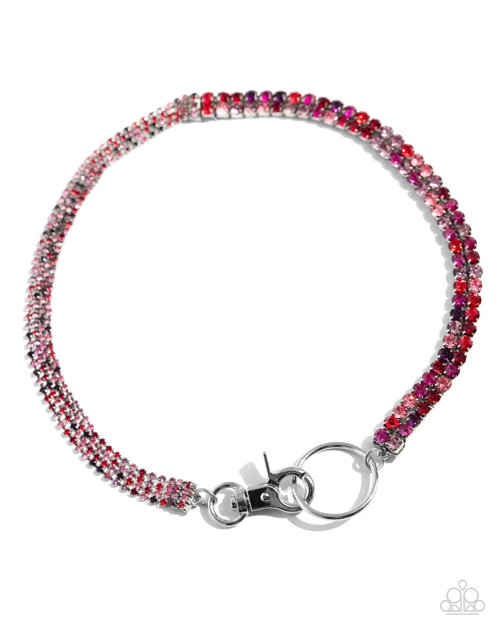 Set in pronged silver fittings, a double-stranded collection of red multicolored crystal-like and faceted gems connects to daintier versions of the same gems in a quartet of elongated strands. Both dynamic pairings connect and clip to a lobster clasp and silver ring for a fierce finish. Features a clasp closure.